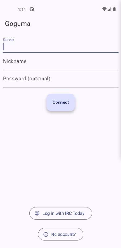 (The Play Store app is just like the base Goguma app, but adds this specific IRC Today integration for easier setup.)