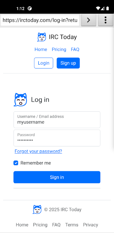 - Click on Log in with IRC Today