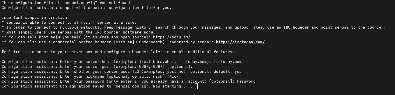 senpai works optimally out of the box with IRC Today. No additional configuration tweaks are required.